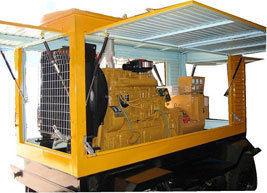 港口柴油发电机组/移动柴油发电机组设计独具创新,机动性高、重心低、制动安全、制造精良、外形美观。 港口拖车车架采用槽梁焊接成框架结构,节点选择合理、强度高、刚性好;同时装有钢板弹簧悬架结构;拖车采用高度可调节插销式牵引架,适用于各种高度牵引车;采用圆形钢管焊接直通式车轴,结构紧凑,安全可靠;车架四角设有机械式支撑装置,配备惯性行车制动、驻车制动和脱离应急制动,确保机组在各种状况下的安全;车架前端设有支撑轮,具备承受机组垂直载荷的功能的同时还具备导向功能;整车配备转向和刹车指示灯,同时装有尾灯标准插头